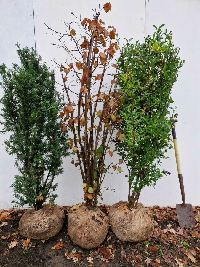 Gemengde haag: Taxus media Hicksii, Gewone Hazelaar en Haagliguster 140/180 cm incl. aanplanten