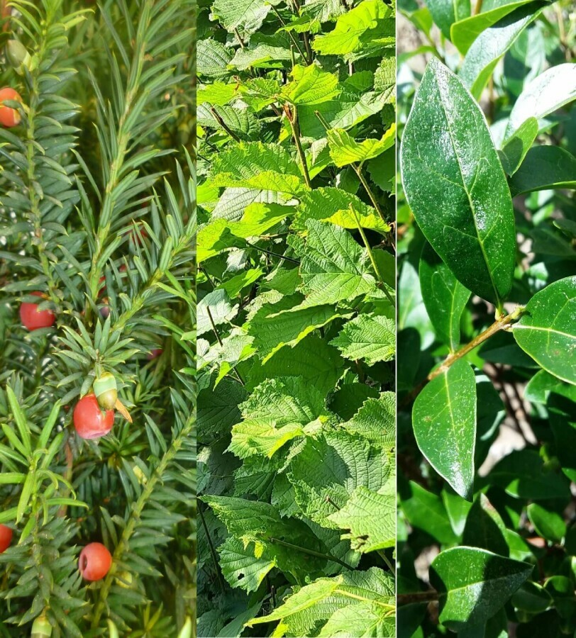 De bessen van de taxus en liguster zijn zeer geliefd bij vogels en voor hen niet schadelijk. Voor mensen zijn beide soorten giftig en niet eetbaar.