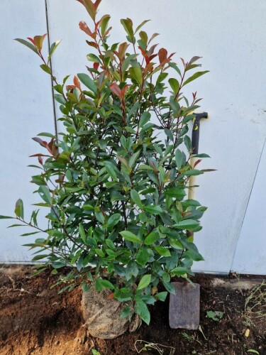 Glansmispel Carré Rouge (Photinia fraseri) bestellen met aanplantservice. Hoogte 100-120 cm gekluit. Deze haagplant groeit compact en dicht en heeft felrode nieuwe bladeren in het groeiseizoen. De prijzen zijn inclusief het aanplanten. De benodigde potgrond en basisbemesting voor het aantal bestelde planten is bij een aanplanting gratis.