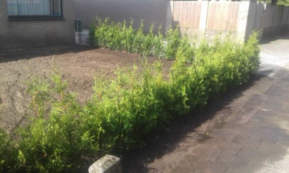 In de regio Eindhoven een coniferenhaag aangeplant van de Thuja occ. Brabant in de hoogte 80/+ cm.