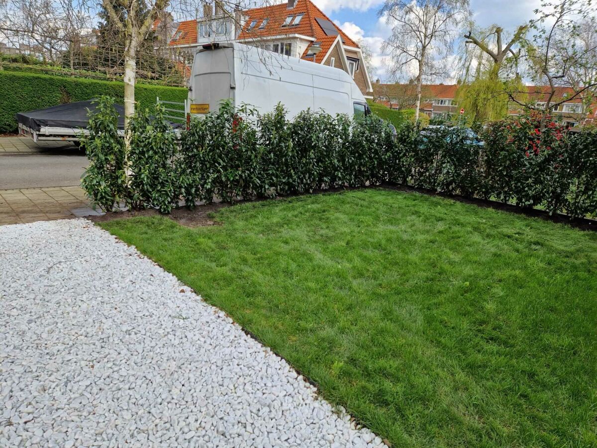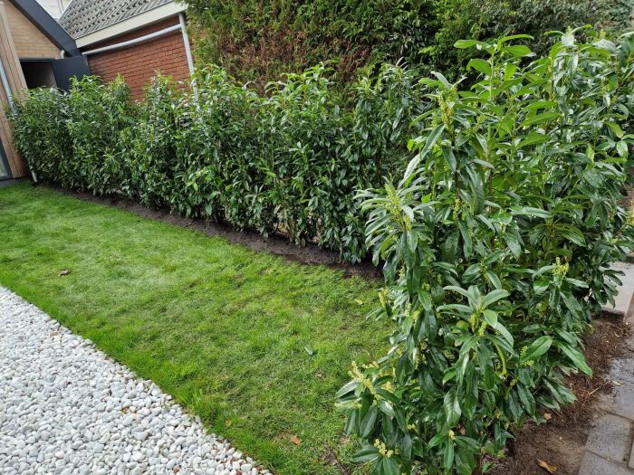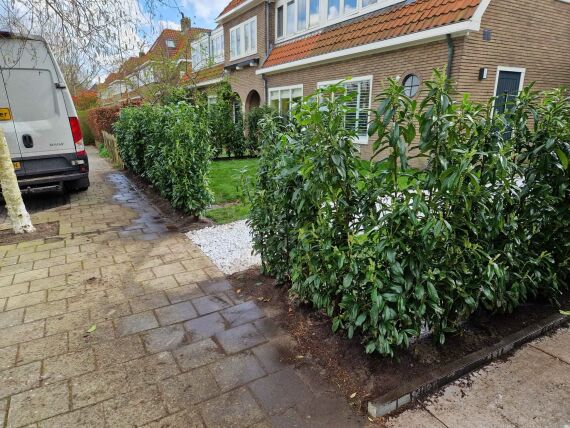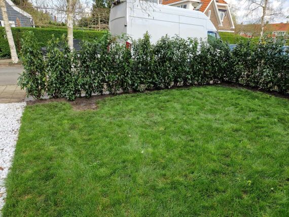De laurierhaag Genolia op de foto's is in de provincie Noord-Holland aangeplant en heeft de hoogte 140-160 cm.