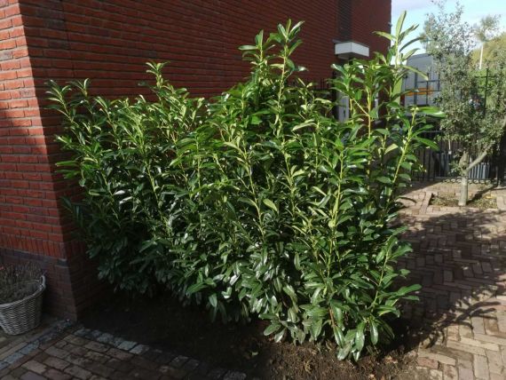 Prunus laurocerasus Genolia (laurier) heg aangeplant in de hoogte 150-175 cm.